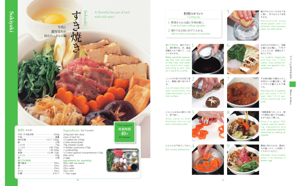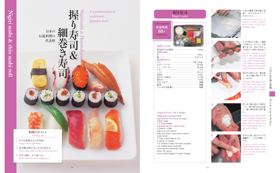 ロングセラー『英語で作る料理の教科書』の中から、外国の方々にも人気の和食を厳選して掲載いたしました。日本の家庭料理を中心に、「天ぷら」「焼き鳥」「すき焼き」「寿司」に「おにぎり」「お好み焼き」などの人気メニューばかりです。料理をしながら見るには、動画よりも圧倒的にわかりやすい20カット以上の手順写真に加え、失敗しないためのコツも随所に掲載。日本で暮らす外国人の方にも、日本旅行で和食にはまった外国の方に、また、海外の方へのプレゼントにもピッタリの1冊となっています。【日本語・英語併記】