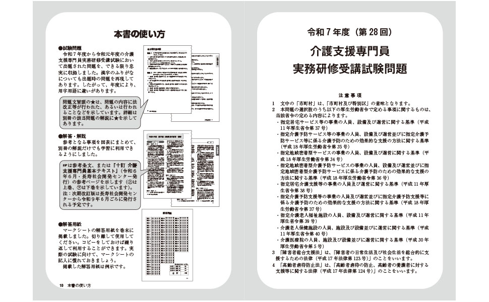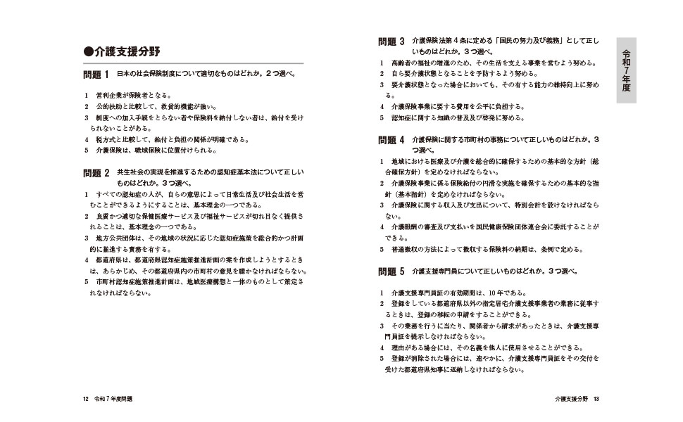 過去問題集の決定版!直近令和7年から令和元年の試験問題まで過去7年分の本試験を網羅し、必要十分の解説には『介護支援専門員基本テキスト』の参照ページをすべてに入れ、さらに知識を広げることが可能。解答・解説は別冊で使いやすい上、この1冊だけでも試験に必要な知識はほとんど身につくように工夫。(本冊192ページ・別冊144ページ)