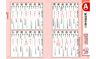 また、6級配当漢字をより効率よく学習できるよう、6級配当漢字の頻出度順に対応させて「漢字表」と「読み」「書き取り」の問題を順に掲載。