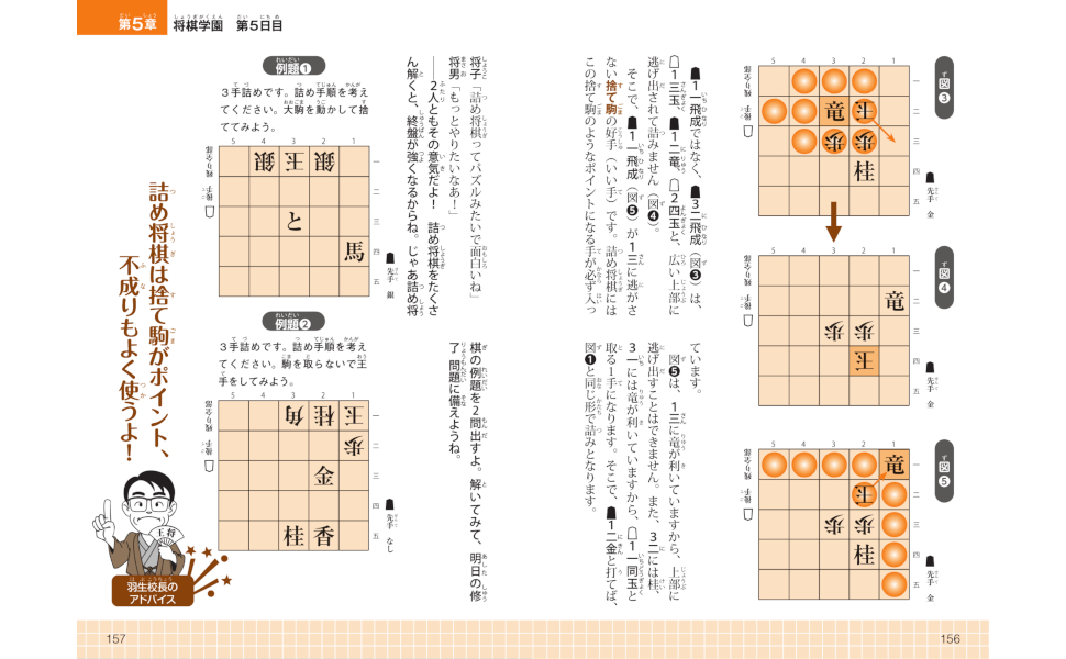 授業を模した先生と生徒の会話形式で、将棋の基本を最短5日間で学べる1冊。