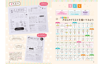 また、先生たちがコピーして使いやすいよう黒1色でイラストの完成形やイラスト&文字組み合わせカットを掲載。