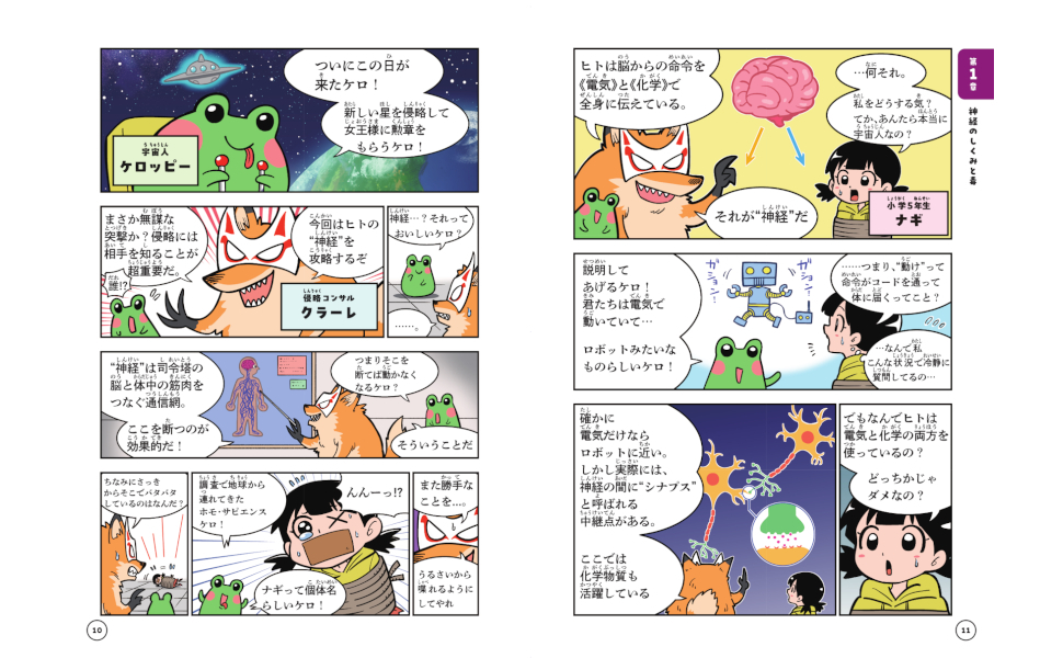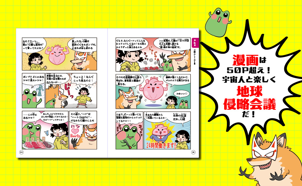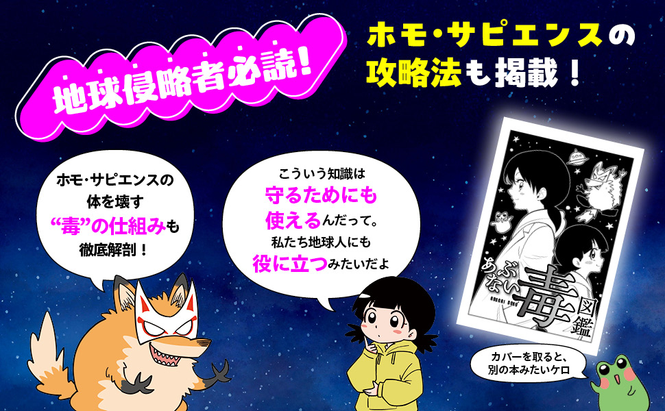 地球侵略を企む宇宙人2人組と、誘拐されたホモ・サピエンスのナギ。3人のボケ(とツッコミ)満載の漫画で、科学が学べるエンタメ図鑑。日常的な話題もたっぷりで、気づけば科学に強くなること間違いなし!