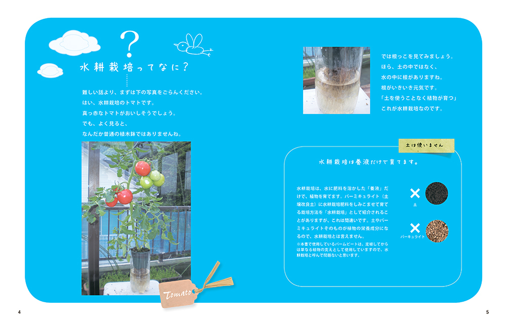 (本書には載っていないのですが)。特にマンション住まいの人は、使った土の処分方法に悩む方も多いので、水耕栽培はとってもおすすめです。