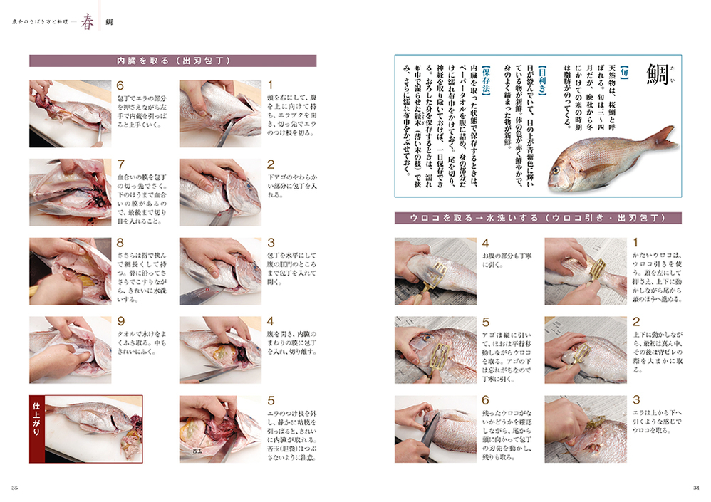 包丁の使い方を写真を多用して詳細に解説。魚介(33種類)、野菜(33種類)を中心に、柚子などの飾り切りのテクニックや肉のさばき方と下処理についても写真でわかりやすく説明しているので、基礎がしっかり学べます。