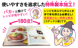 本が閉じてしうまうストレスなく、パタッと開いたまま料理ができちゃいます!