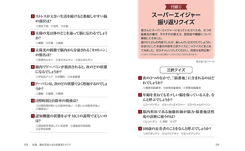 本書で紹介している「若返る脳」になるための行動・習慣を実践し、実年齢よりも30歳若い「スーパーエイジャー」になりましょう!