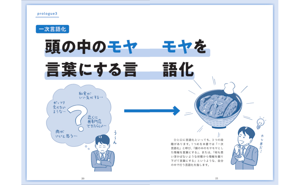 ビジネスシーンにおいて、「相手に伝わる」「有効なアイデアを出す」というレベルではなく、間違えていてもいいので、自分の頭にある考えを掘り起こして言葉にするための方法やメソッドを紹介