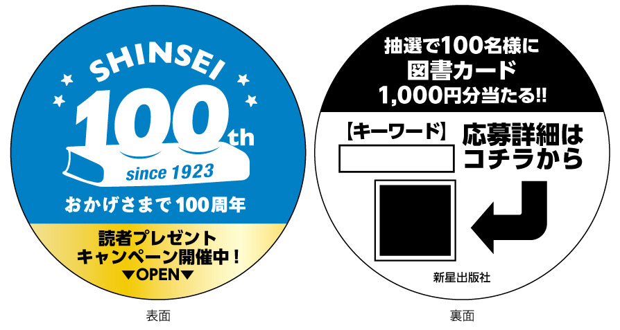 対象書籍の表紙に「図書カード1,000円分を100名様へプレゼント!」応募シールが付いています。