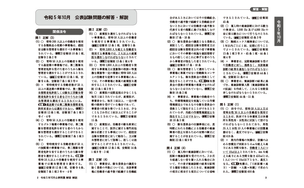 類書中最多!直近8回分の本試験過去問題(公表分)に、簡潔でわかりやすい別冊「解答・解説」を掲載。過去問が繰り返し出題されやすい衛生管理者試験では、多くの本試験問題をこなすことが合格への最短距離です。本書なら、合格の実力が十分に身につきます。別冊解答・解説付き