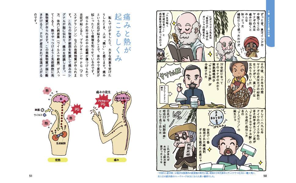 おくすりの成分や効能はもちろん、鎮痛剤の始まりは柳の木?といった豆知識まで。