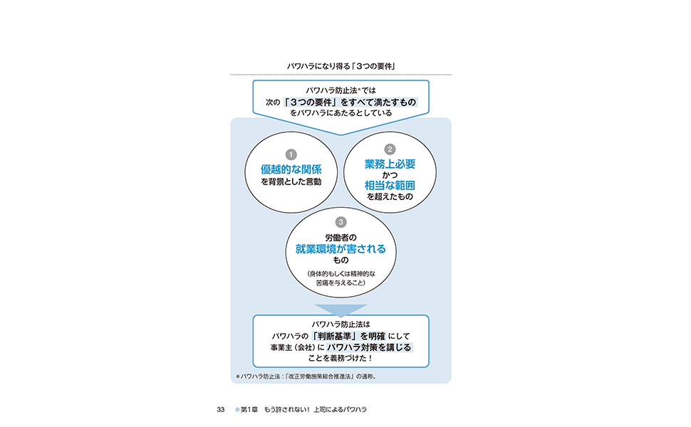 たとえば、パワハラでは、暴力を振るう、罵倒するのような、わかりきったハラスメントだけでなく、微妙なラインの事柄にも触れています。