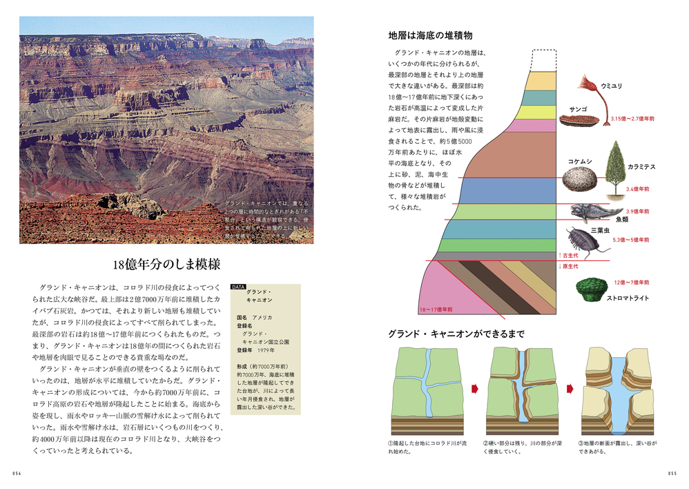 本書は、人気の自然遺産を対象に、この不思議で美しい風景は、どうしてつくられたのか? をビジュアル重視で解説します。地球のしくみや大地の鼓動、世界各地の絶景や奇観など、地球が見せる不思議な姿を、美しい写真と地球科学的な解説で紹介します。