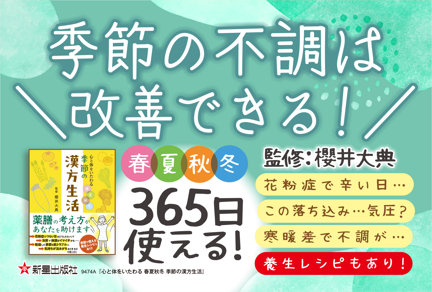 「心と体をいたわる 春夏秋冬 季節の漢方生活」978-4-405-09474-1のPOPです。