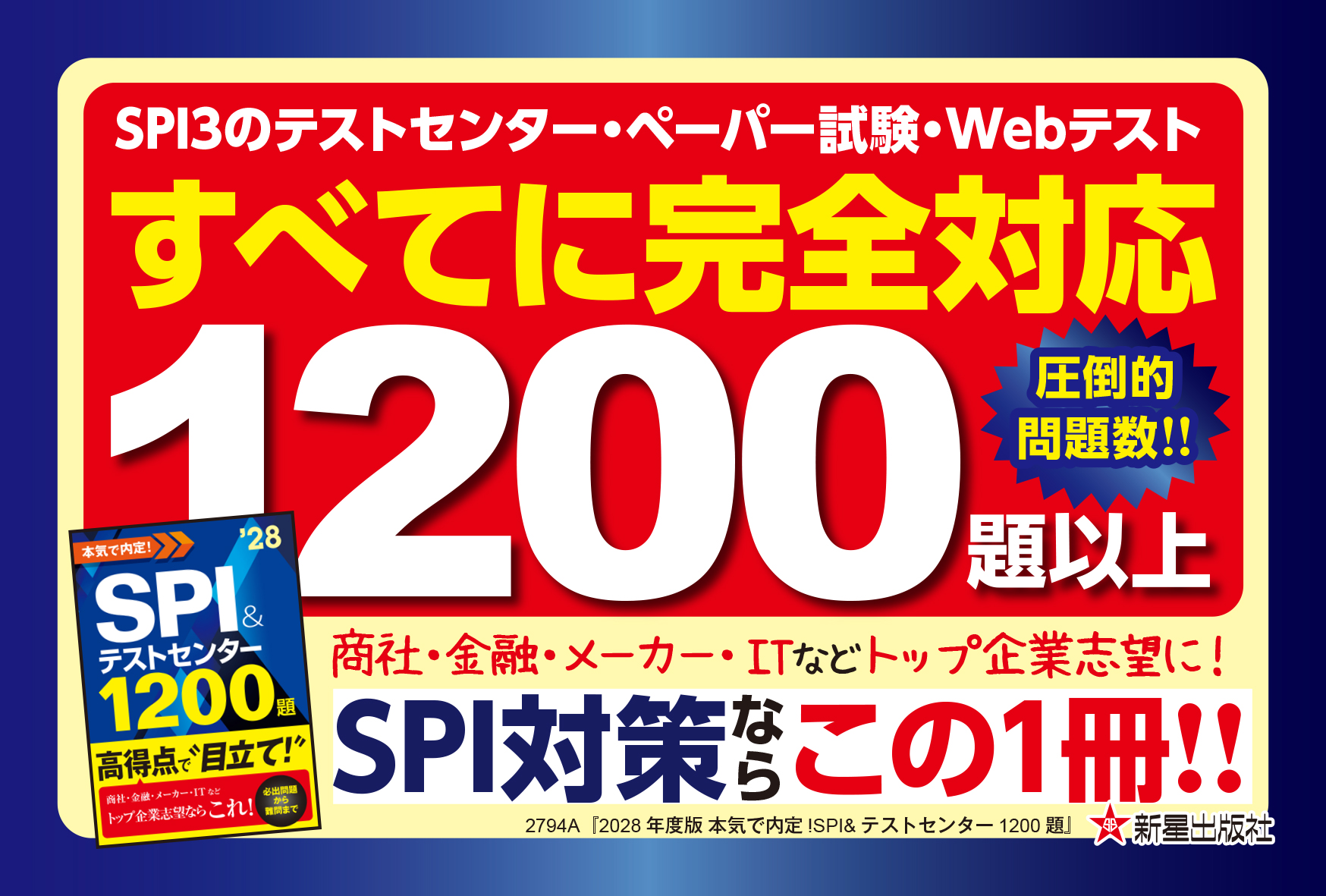 「2028年度版 本気で内定! SPI&テストセンター1200題」978-4-405-02794-7のPOPです。